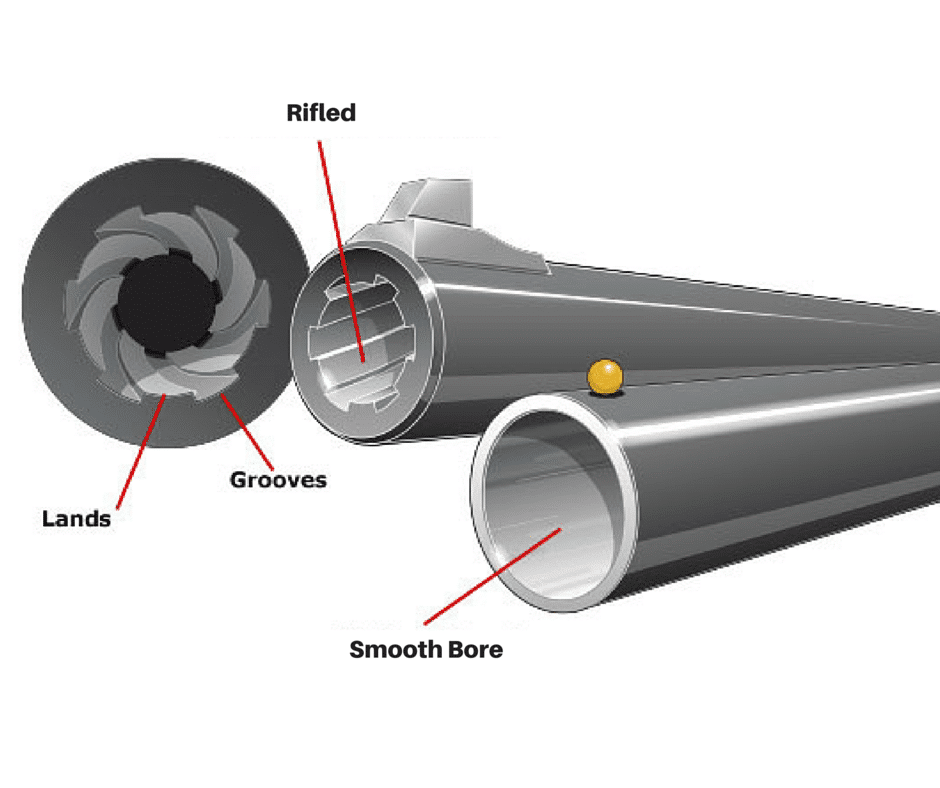 - Smoothbore: These barrels don’t have rifling (no grooves). Great for short range, 50 yards or so. Works better with rifled slugs.
